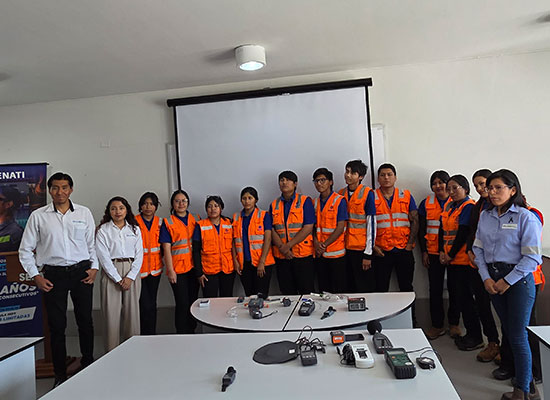 El taller fue brindado por nuestra empresa MONECO S.A.C, quien guio a los estudiantes en el uso de equipos básicos de medición, como sonómetros, luxómetros y bombas de muestreo de aire, permitiéndoles familiarizarse con procedimientos técnicos reales de monitoreo y control.
